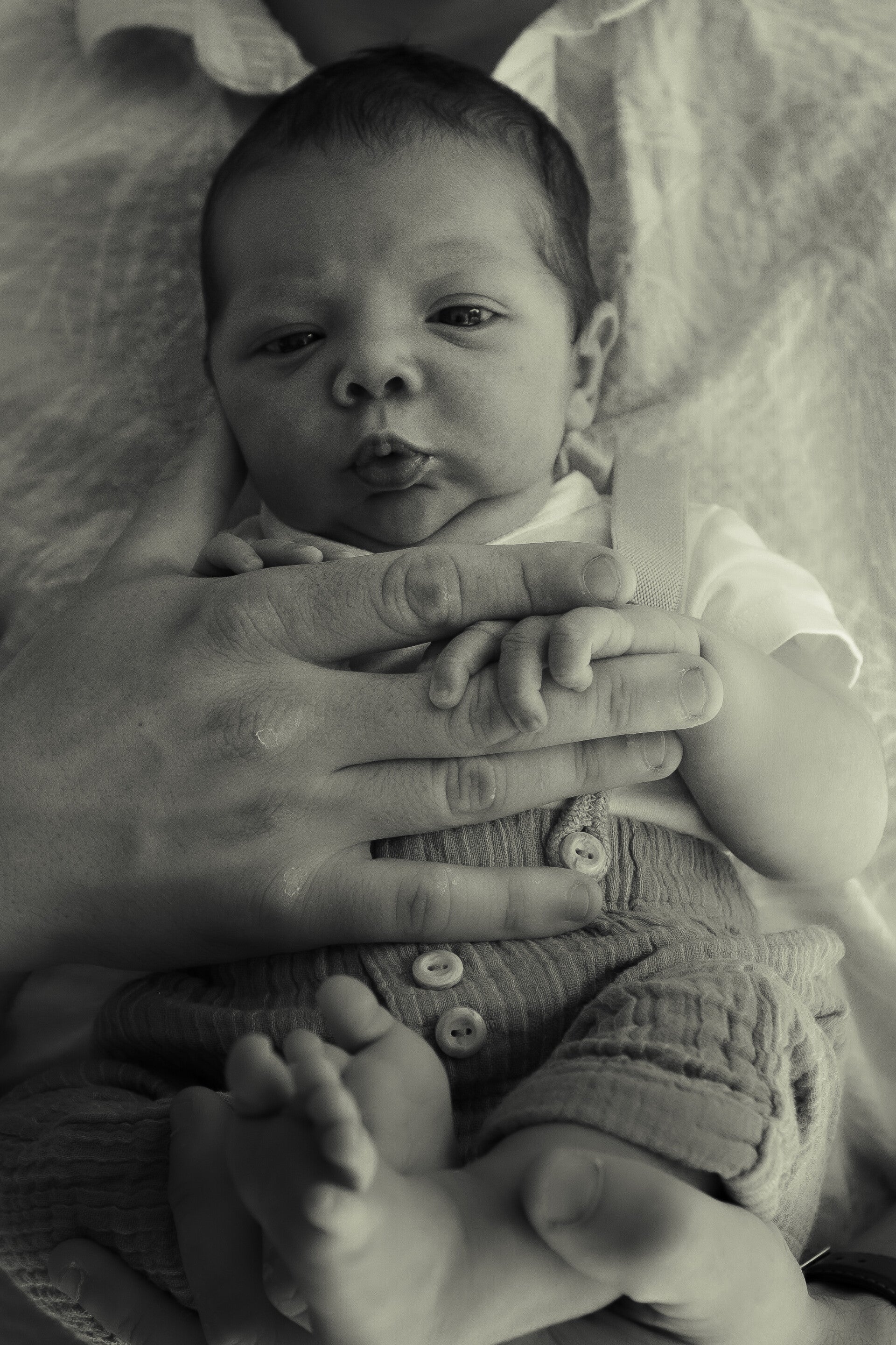 Tijdens de newborn shoot zoeken we een mooi plekje op in jullie huis. Een plekje met mooi daglicht in een rustige ruimte. We nemen uitgebreid de tijd om het ritme van de baby te volgen en leggen zo de meest unieke beelden vast. Genoeg beelden van de baby alleen, close ups, met het gezin en papa/mama samen met jullie wondertje. Het enige waar jullie aan hoeven te denken is een gevoede baby, lekker veel kusjes en knuffels voor het fotomoment bewaren en een outfit waar jullie je fijn in voelen. Dit laatste kan ook geregeld worden uit de client closet. Geen zorgen om een huilend kindje en wees vooral niet bang dat jullie geen ervaring hebben voor een camera. Ik geef jullie op een rustige manier aansturing zodat ieder beeld uniek wordt. De shoot vindt bij voorkeur plaats in de 1-5 weken na de geboorte, maar kan ook daarna.